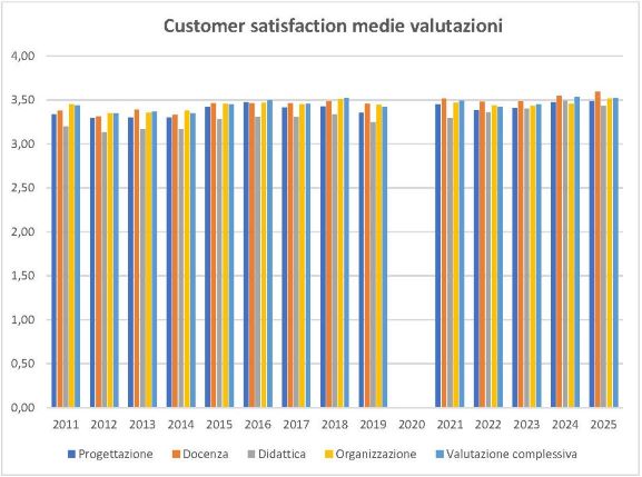 La valutazione del questionario della customer satisfaction è espressa in una scala da 0 (gravemente insufficiente) a 4 (ottimo).